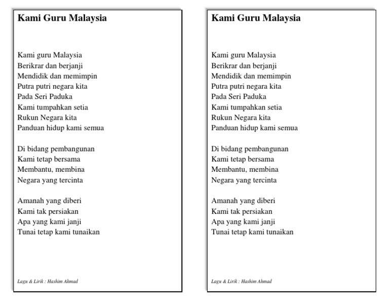 Download lirik lagu ibu guru kami vocal by ceo file 439 mb with just follow these audio downloads are accessible from. Lirik Lagu Kami Guru Malaysia HD chords by Unknown artist. Tiga satu bulan lapan lima puluh tujuh.